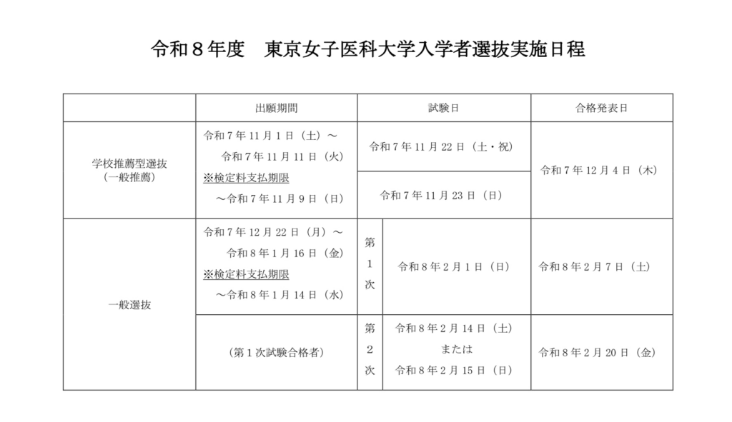 - 東京女子医科大学 学生募集要項(2026年度版)